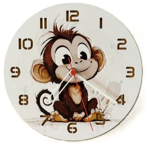 Számlap: A stencilezett barna számok között a 7-es és az 5-ös szám konkrétan a majom lábai alatt pihen, mert neki is kell a stabilitás.