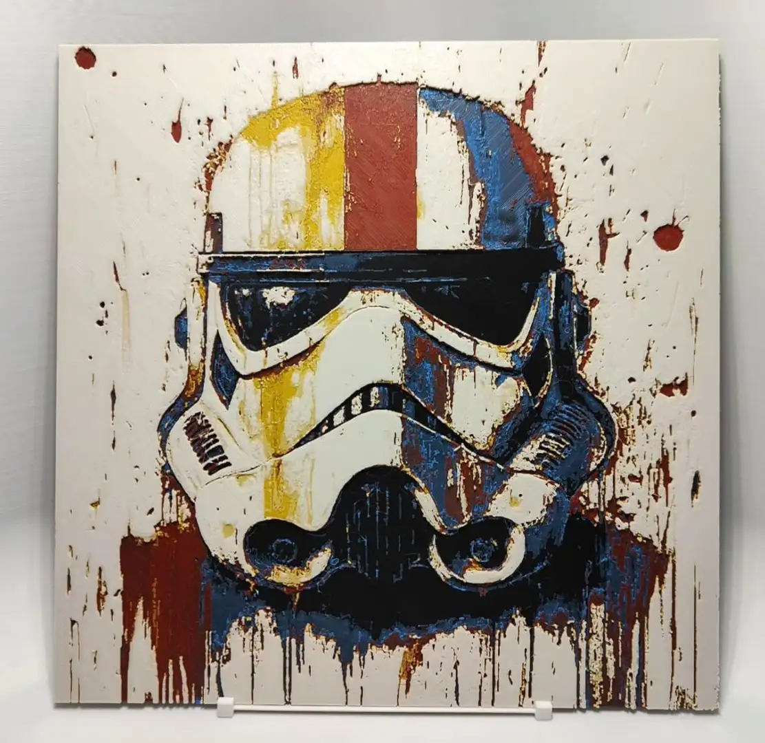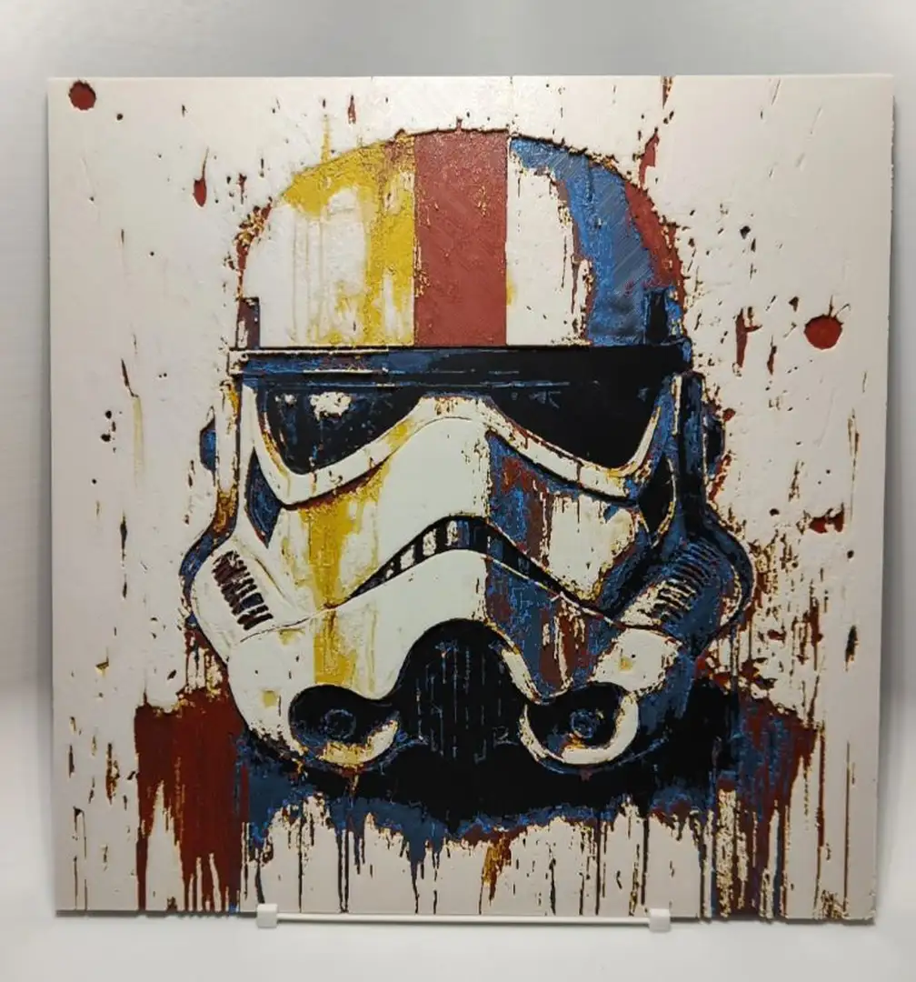 Ez a 3D nyomtatott fali dekoráció nem csupán egy kép, hanem egy színes emlékeztető: a Sötét Oldalnak is lehetnek vidám napjai, amikor épp nem a lázadókat kergetik. Méret: 200×200